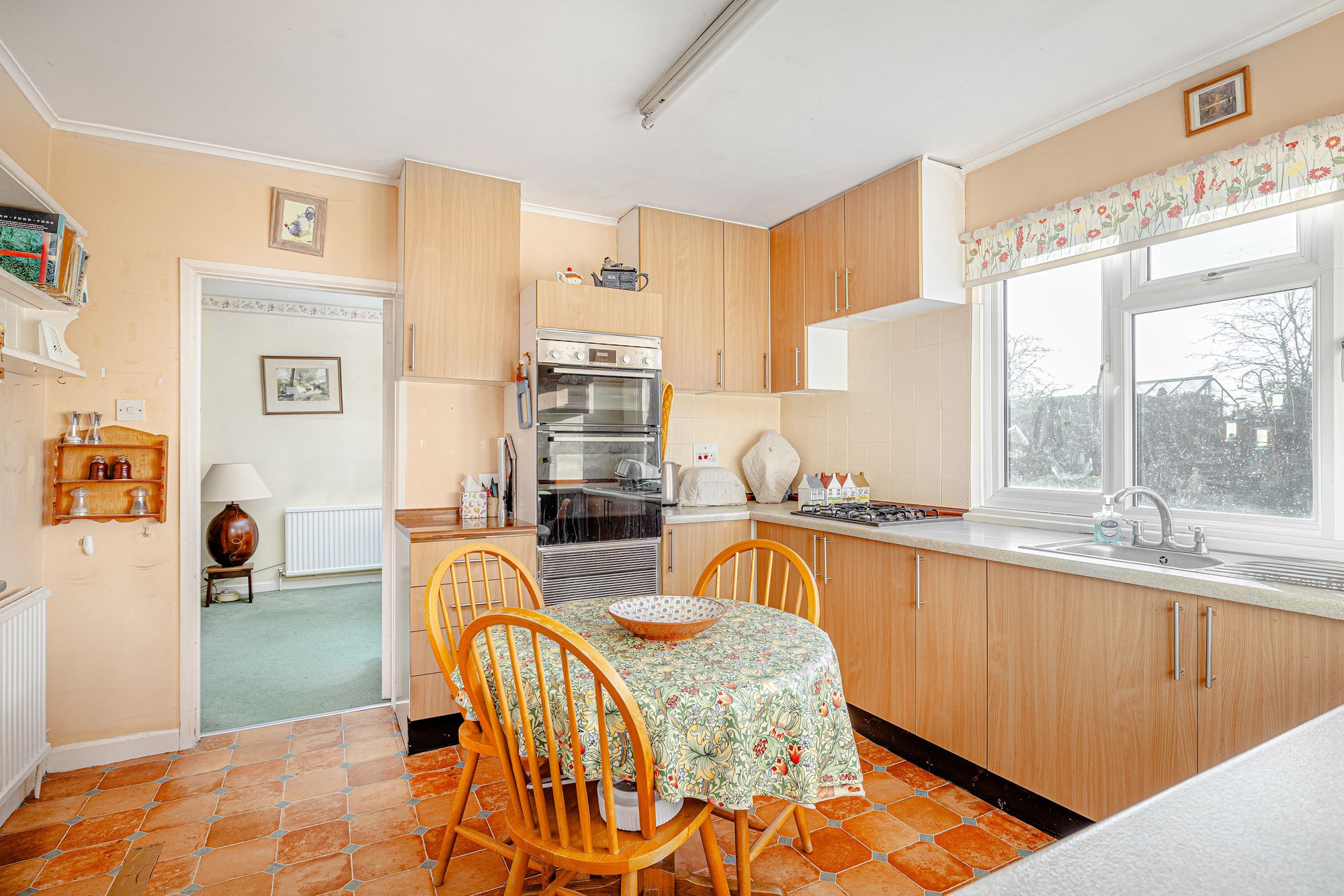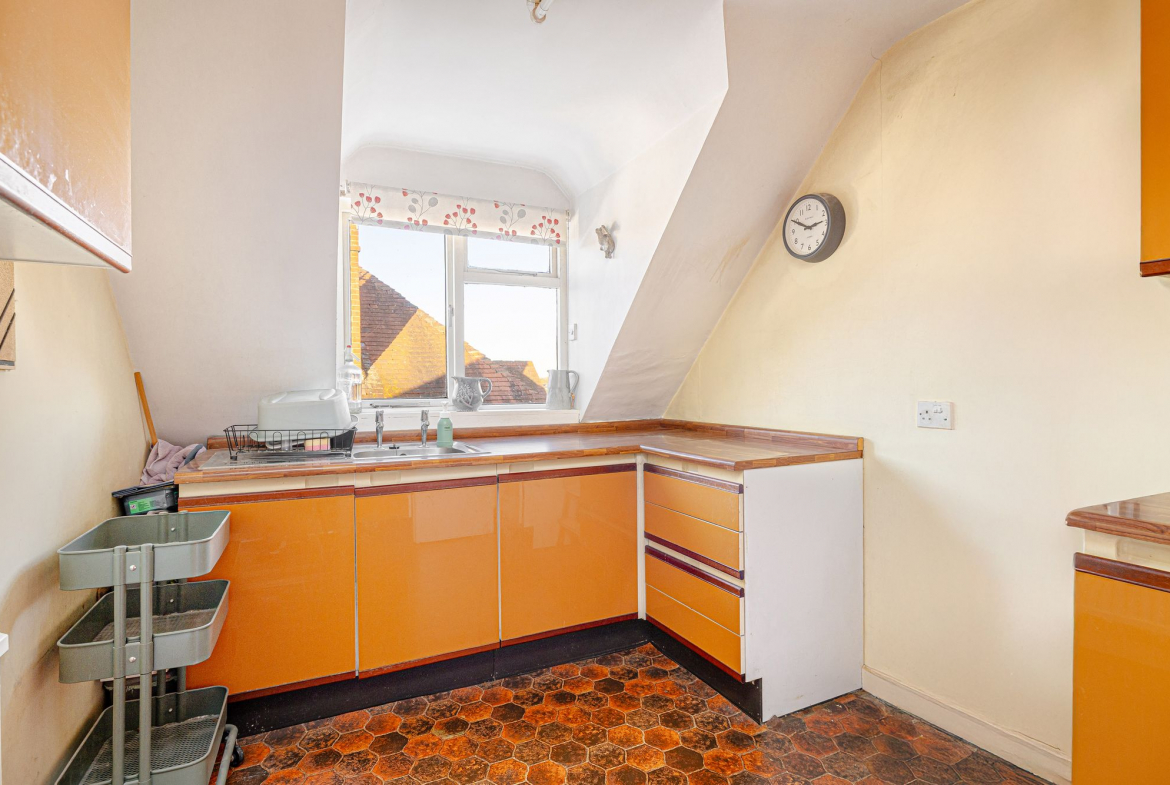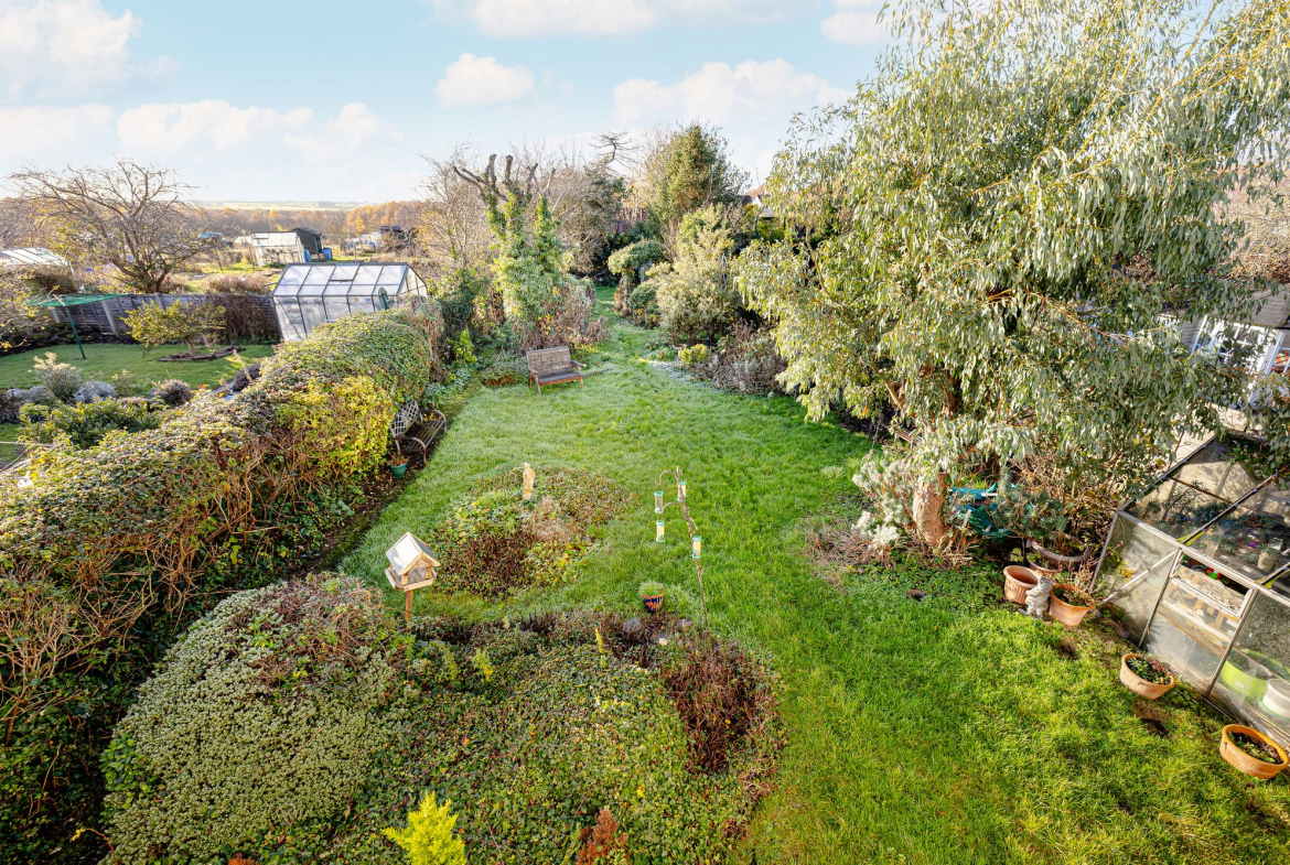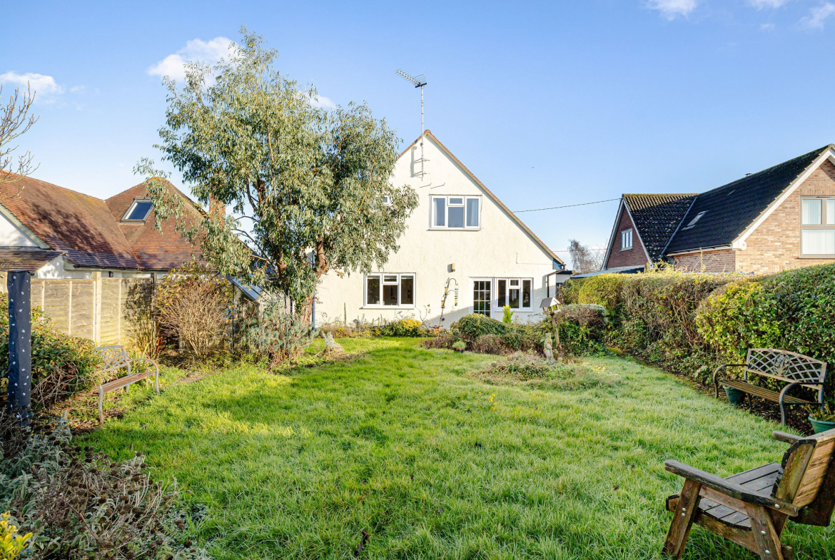 Downstairs comprises three bedrooms, a large open-plan living/dining area, and a good-sized kitchen that overlooks the very generous garden–perfect for family life and entertaining. There is a driveway providing ample parking, along with a single garage.