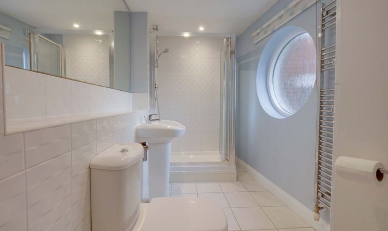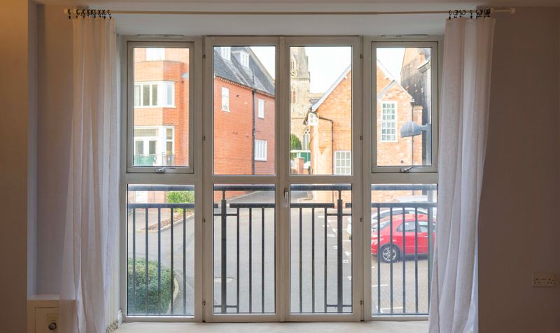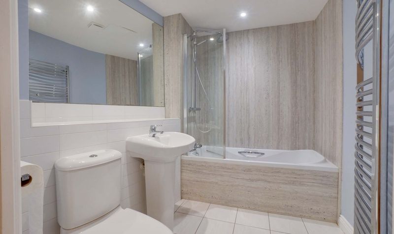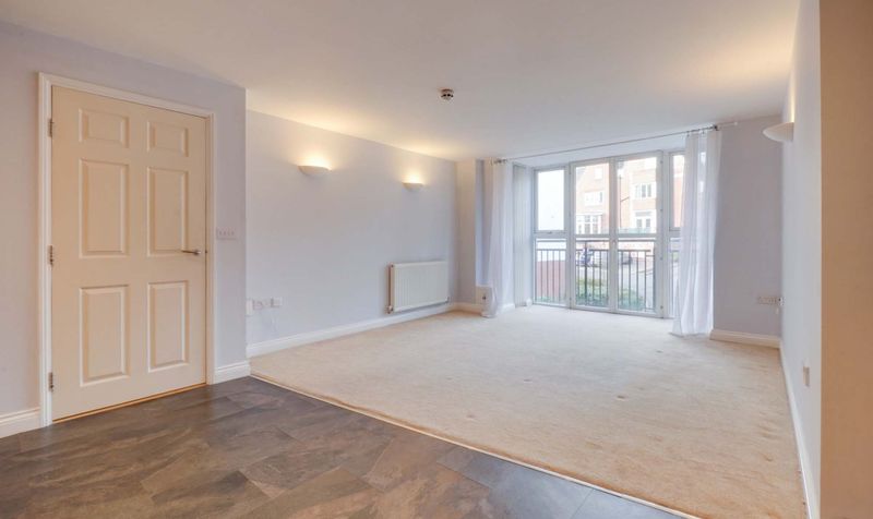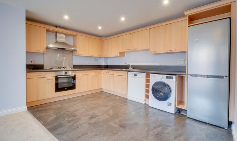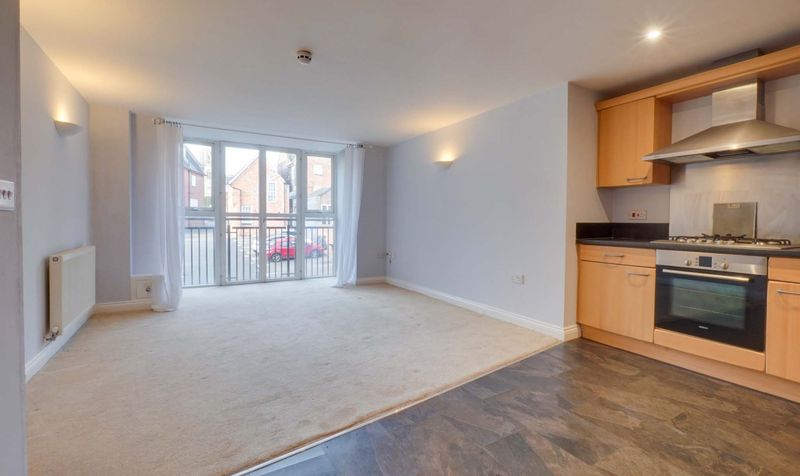 The accommodation opens into a spacious entrance hallway which leads through to an open-plan kitchen, lounge and dining area. The kitchen is fitted with a range of modern units and forms part of a sociable living space, while the lounge area benefits from a Juliet balcony allowing natural light into the room.