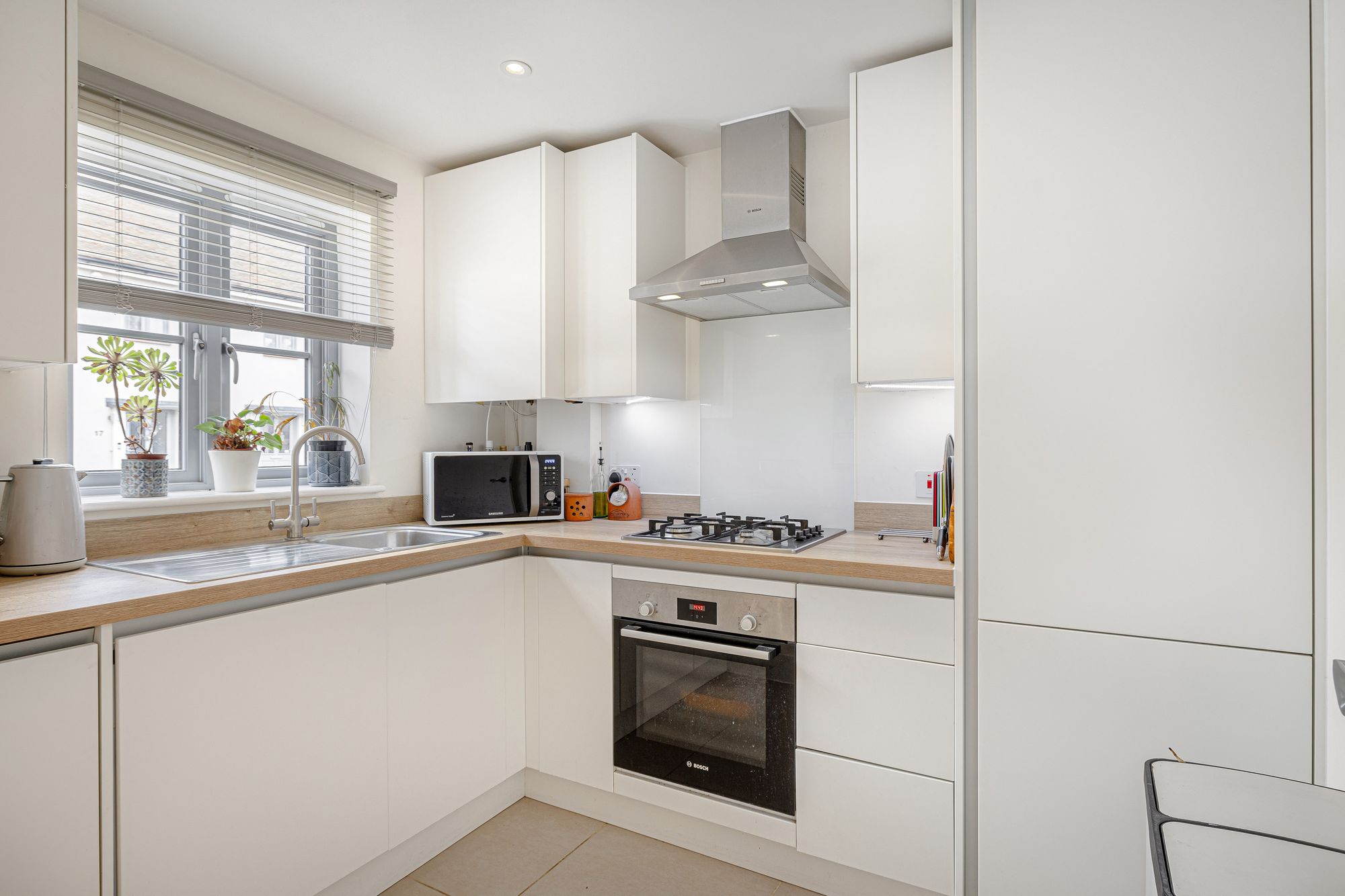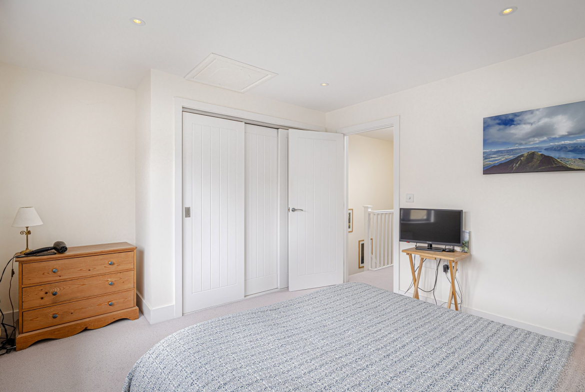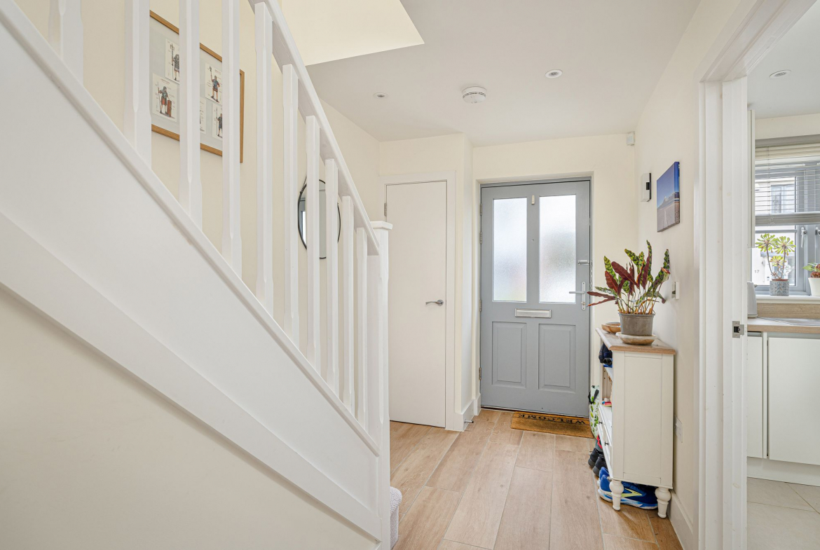 Upstairs, there are two well-proportioned double bedrooms. The principal bedroom is a calm retreat and benefits from a built-in wardrobe, helping keep the room clutter-free and maximising floor space. The second bedroom is equally versatile, ideal for guests, a nursery or a dedicated home office, along with a modern family bathroom and useful storage on the landing.