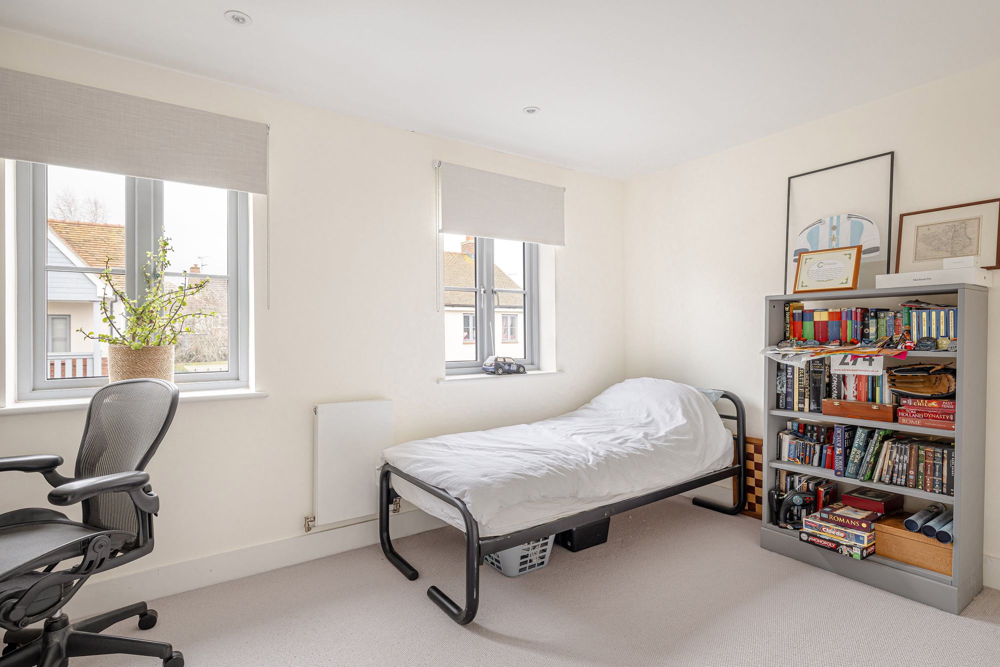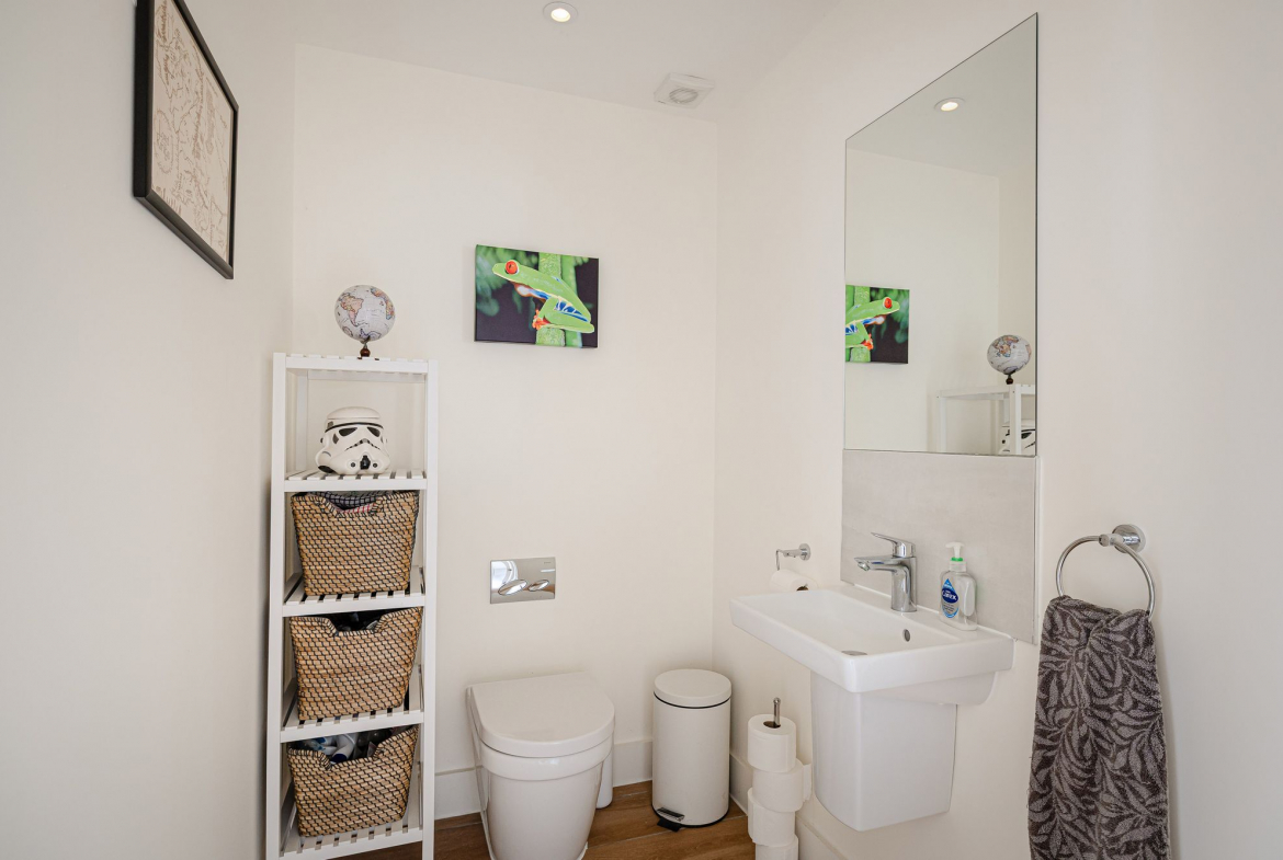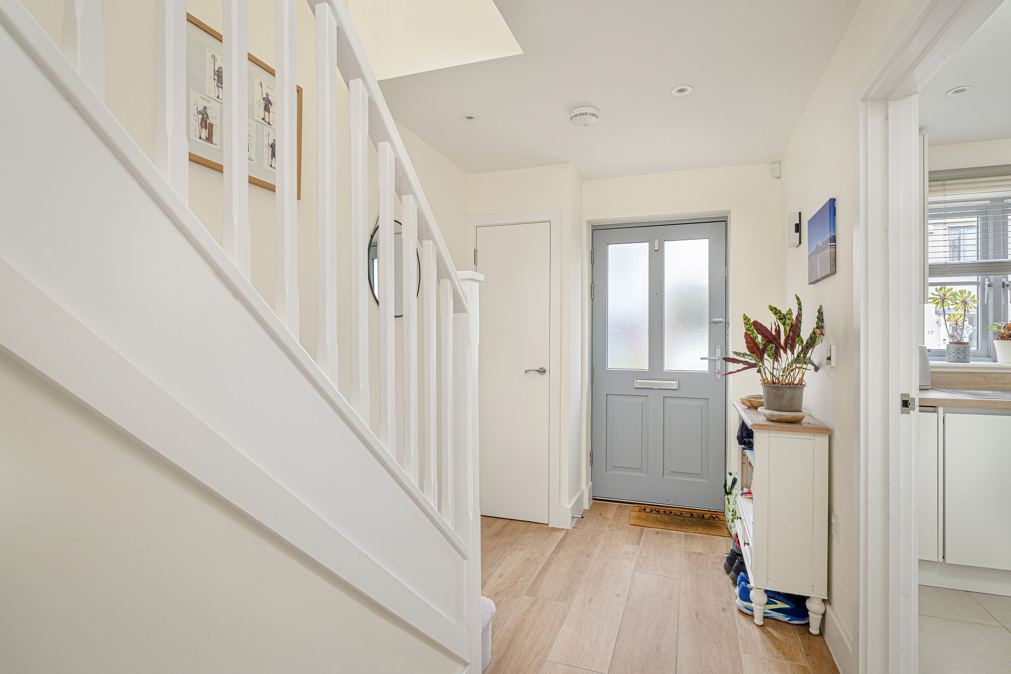 Upstairs, there are two well-proportioned double bedrooms. The principal bedroom is a calm retreat and benefits from a built-in wardrobe, helping keep the room clutter-free and maximising floor space. The second bedroom is equally versatile, ideal for guests, a nursery or a dedicated home office, along with a modern family bathroom and useful storage on the landing.