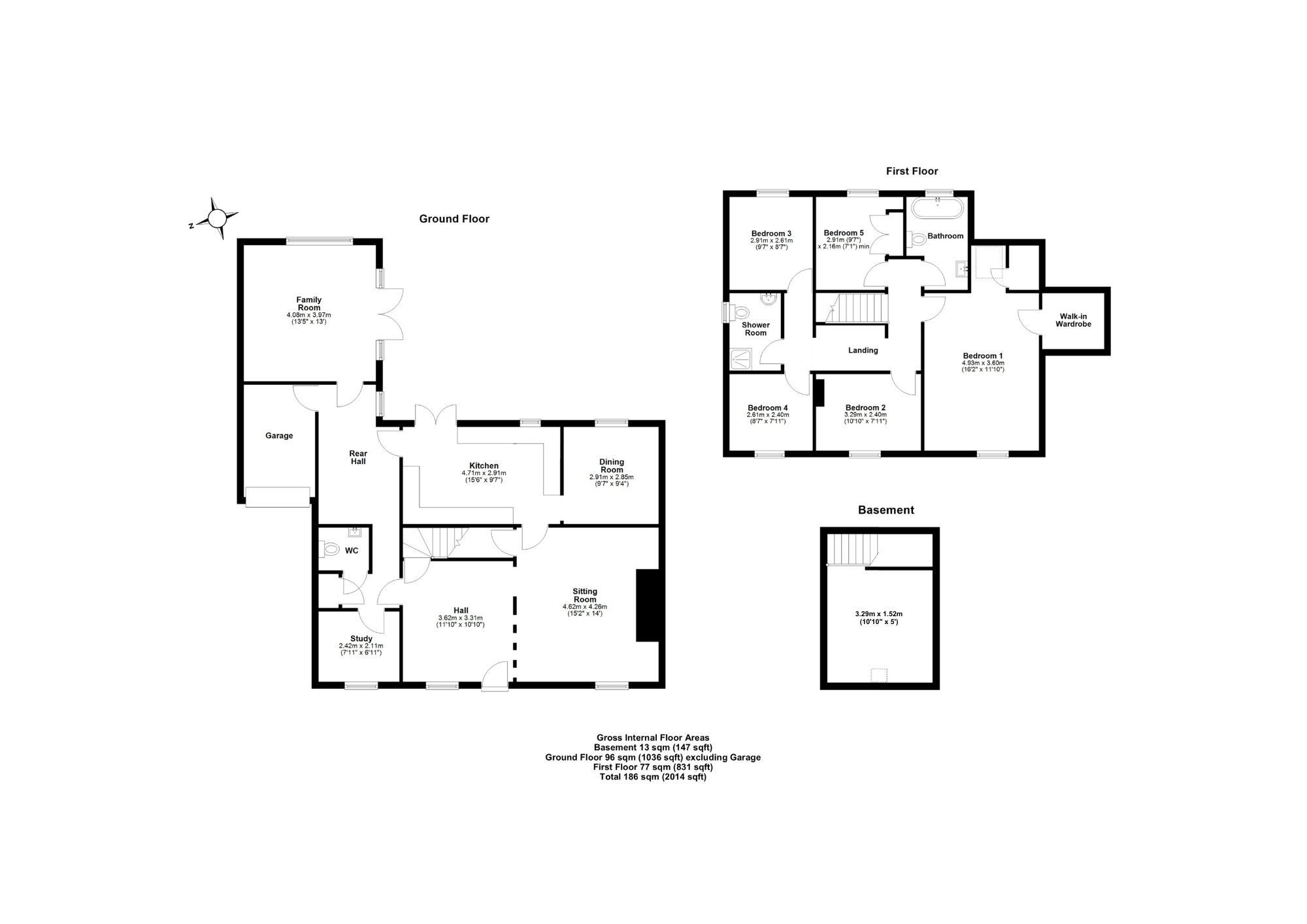 Upstairs, the first floor continues the theme of character and space with five bedrooms, offering flexibility for growing families, guests, or those requiring additional home office or hobby rooms. The principal bedroom is a particularly lovely room, generous in proportions and featuring a charming fireplace and a walk-in wardrobe, whilst the remaining bedrooms are well arranged and full of natural light.