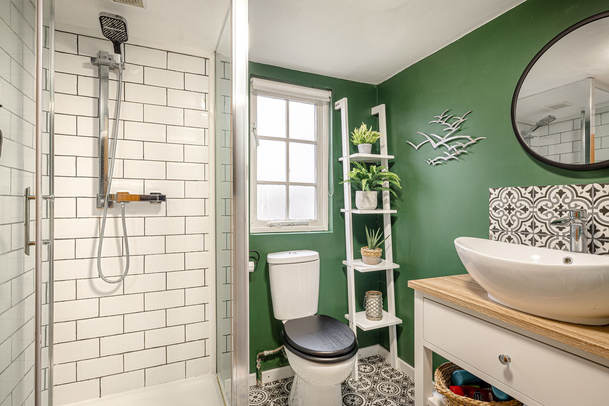 The family bathroom has been designed with a boutique feel and features a beautiful freestanding roll-top bath, complemented by panelling, warm tones and classic styling. This is further supported by a separate shower room, finished in a contemporary design with crisp tiling and modern fittings.