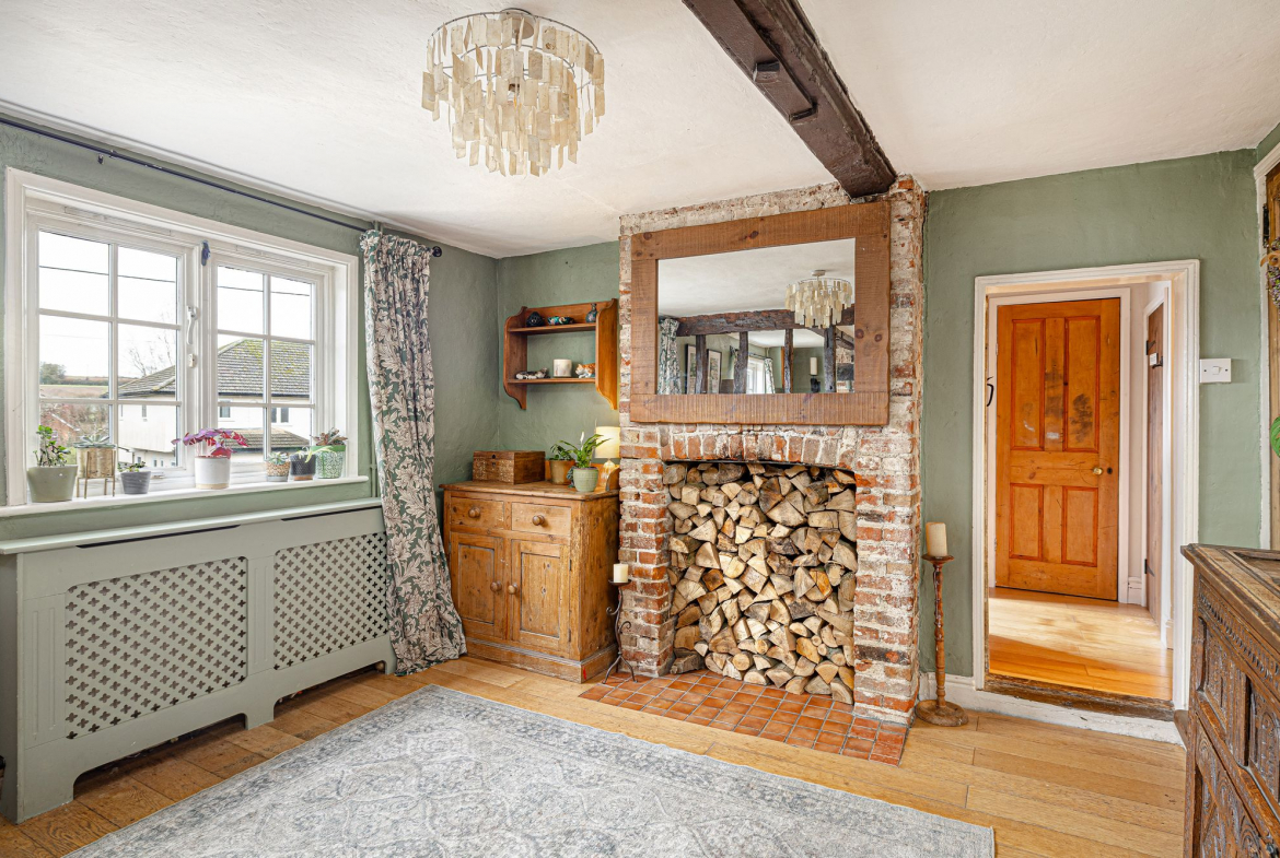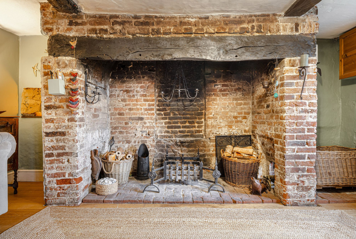 The accommodation flows beautifully into the main sitting room, a generous and light-filled room that enjoys views over the rear garden and direct access outside – making it ideal for summer gatherings and relaxed evenings at home. A further reception room offers a more traditional feel, filled with exposed beams and centred around an impressive inglenook fireplace, creating a cosy retreat and a true reminder of the home’s heritage.
