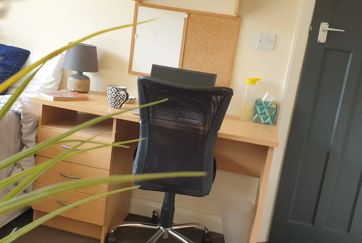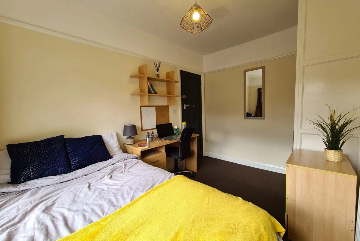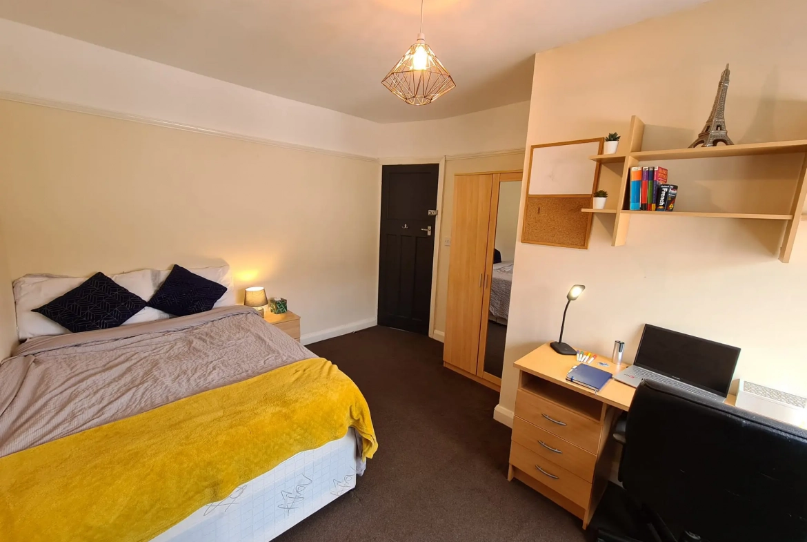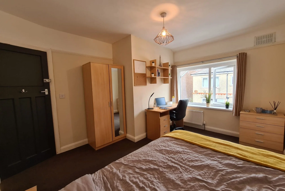 Three Generous Double Bedrooms: Each furnished with a comfortable 4ft double bed and stylish furnishings, wardrobe, desk, chair, bedside cabinet, and chest of drawers.
