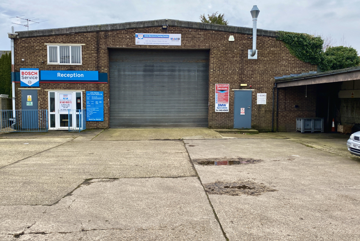 The property comprises a detached, concrete portal frame unit with brick elevations and a lined pitched roof containing translucent panels. The first-floor offices total 576 sqft and benefit from carpeting, double glazing, suspended ceiling, LED lighting, radiator heating and window blinds.