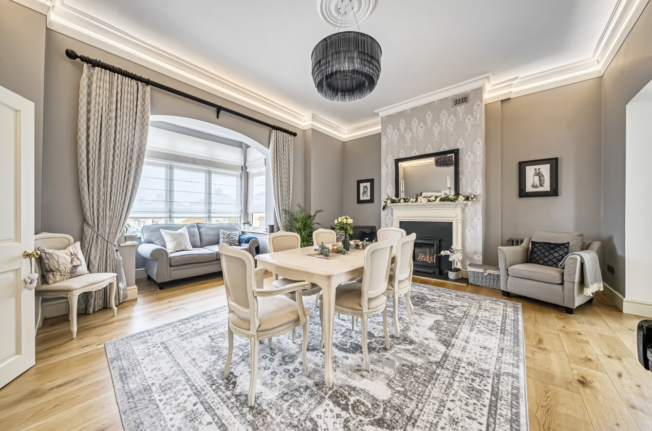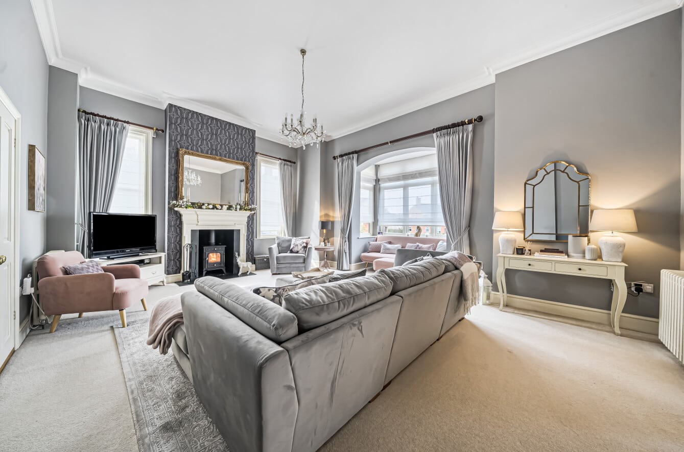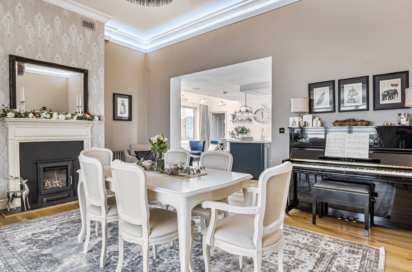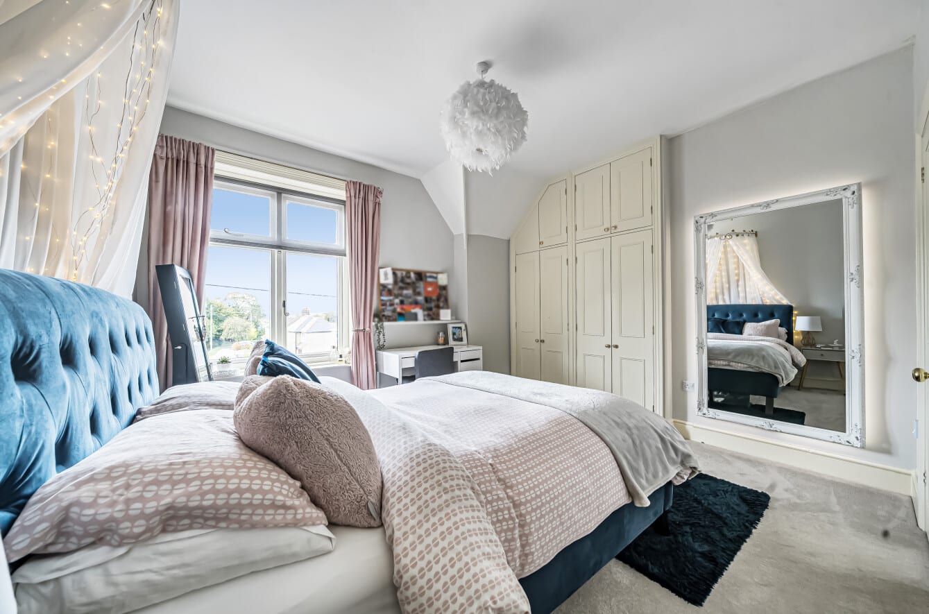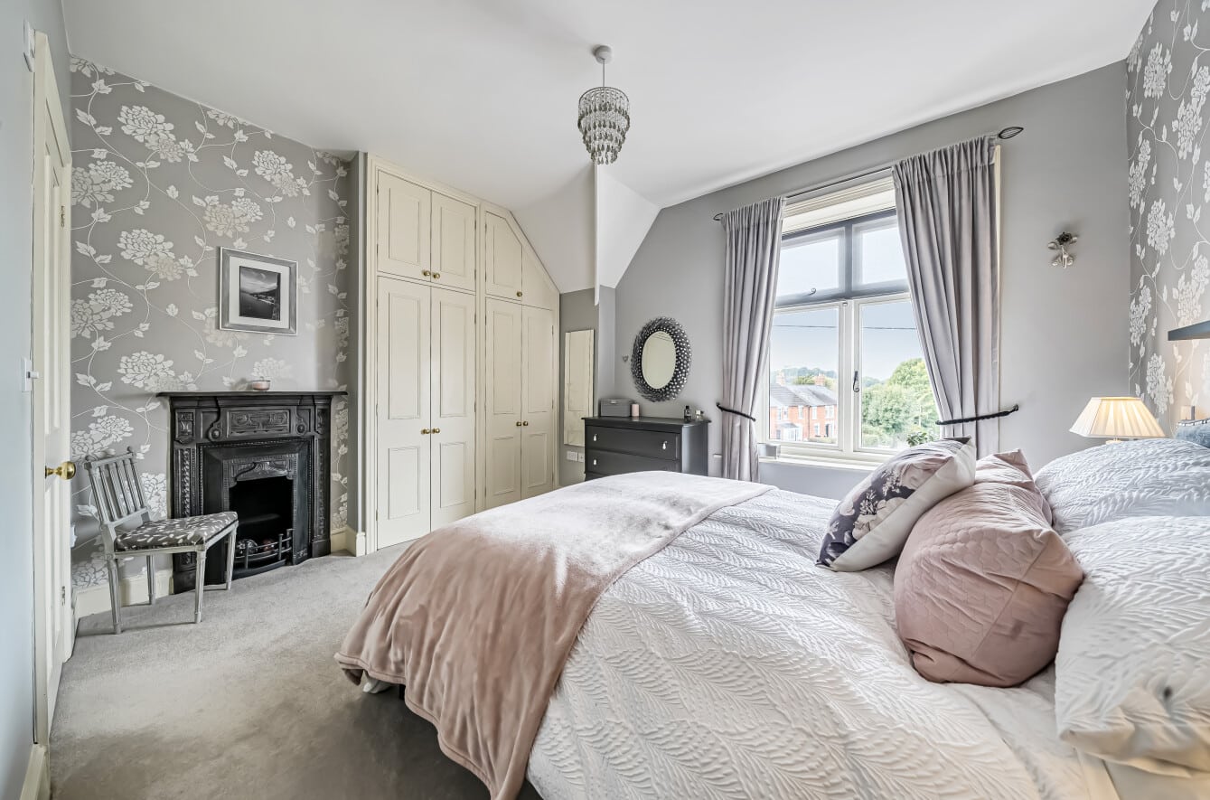 This spacious home offers four double bedrooms, three of which feature built-in wardrobes for seamless storage. Two benefit from private en-suite bathrooms, while one showcases a beautiful period fireplace – adding a touch of character and charm to the sleeping space.