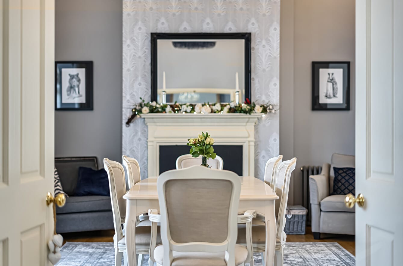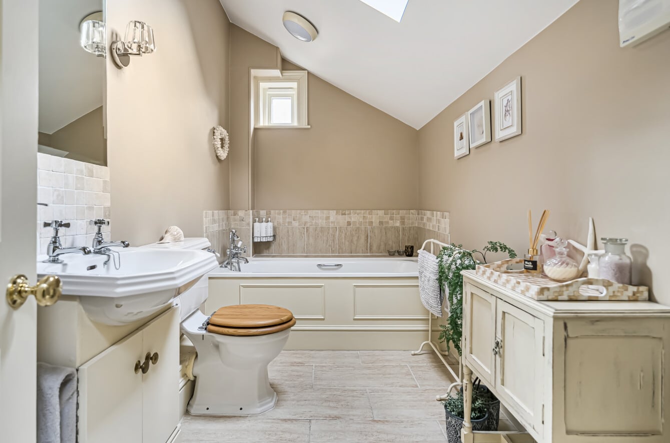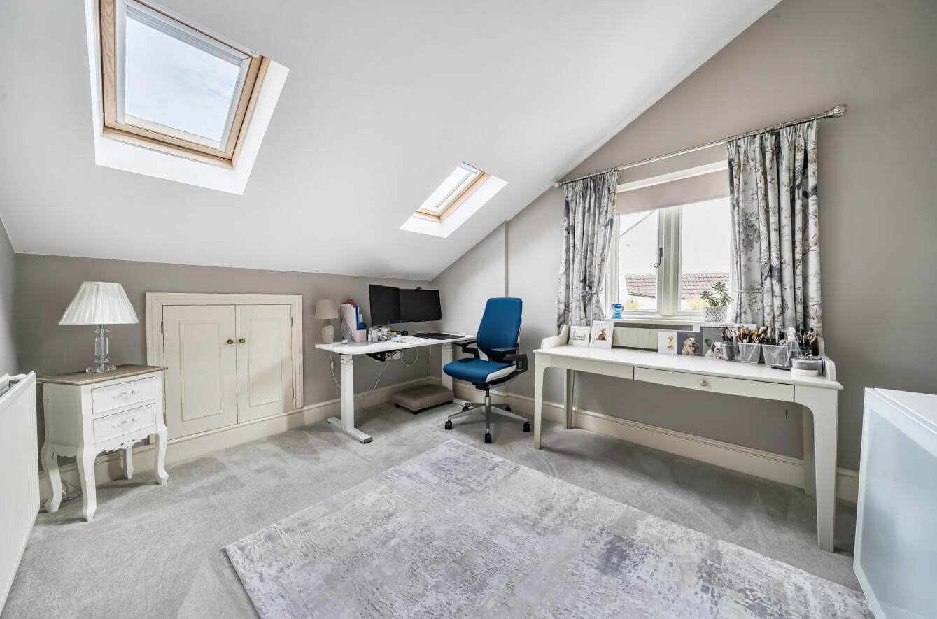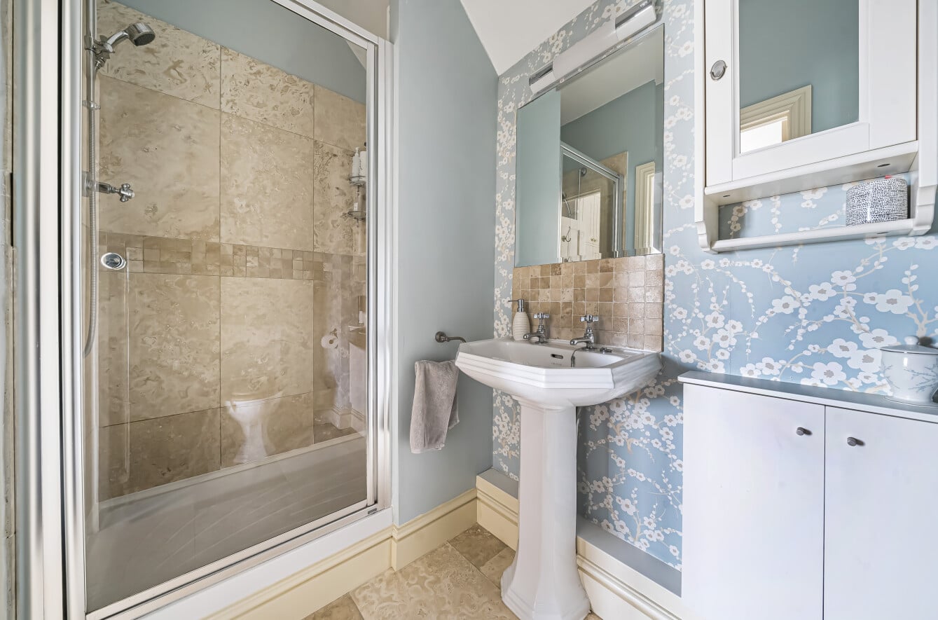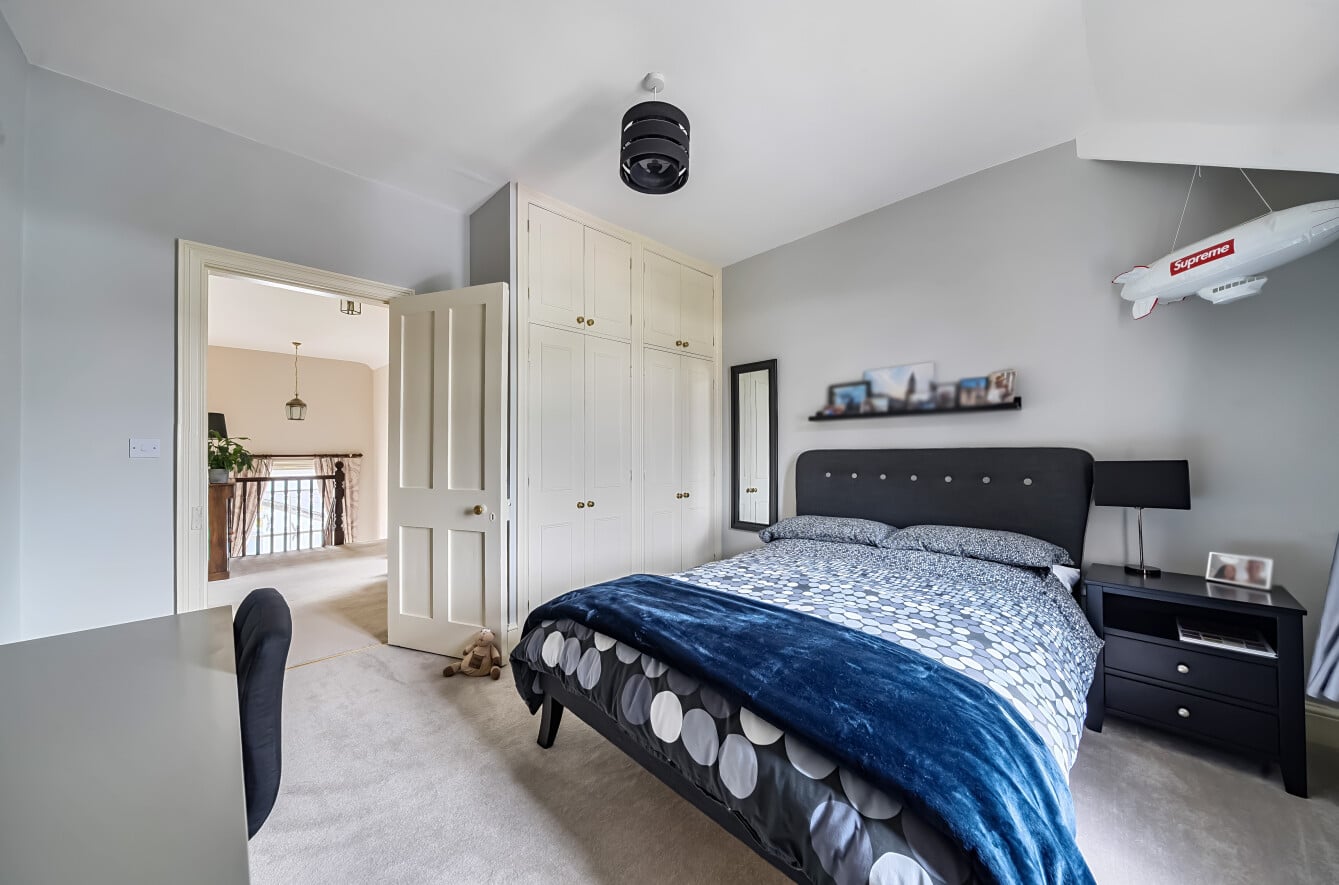 This spacious home offers four double bedrooms, three of which feature built-in wardrobes for seamless storage. Two benefit from private en-suite bathrooms, while one showcases a beautiful period fireplace – adding a touch of character and charm to the sleeping space.