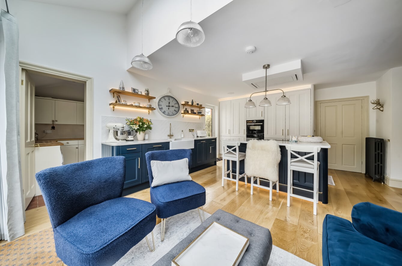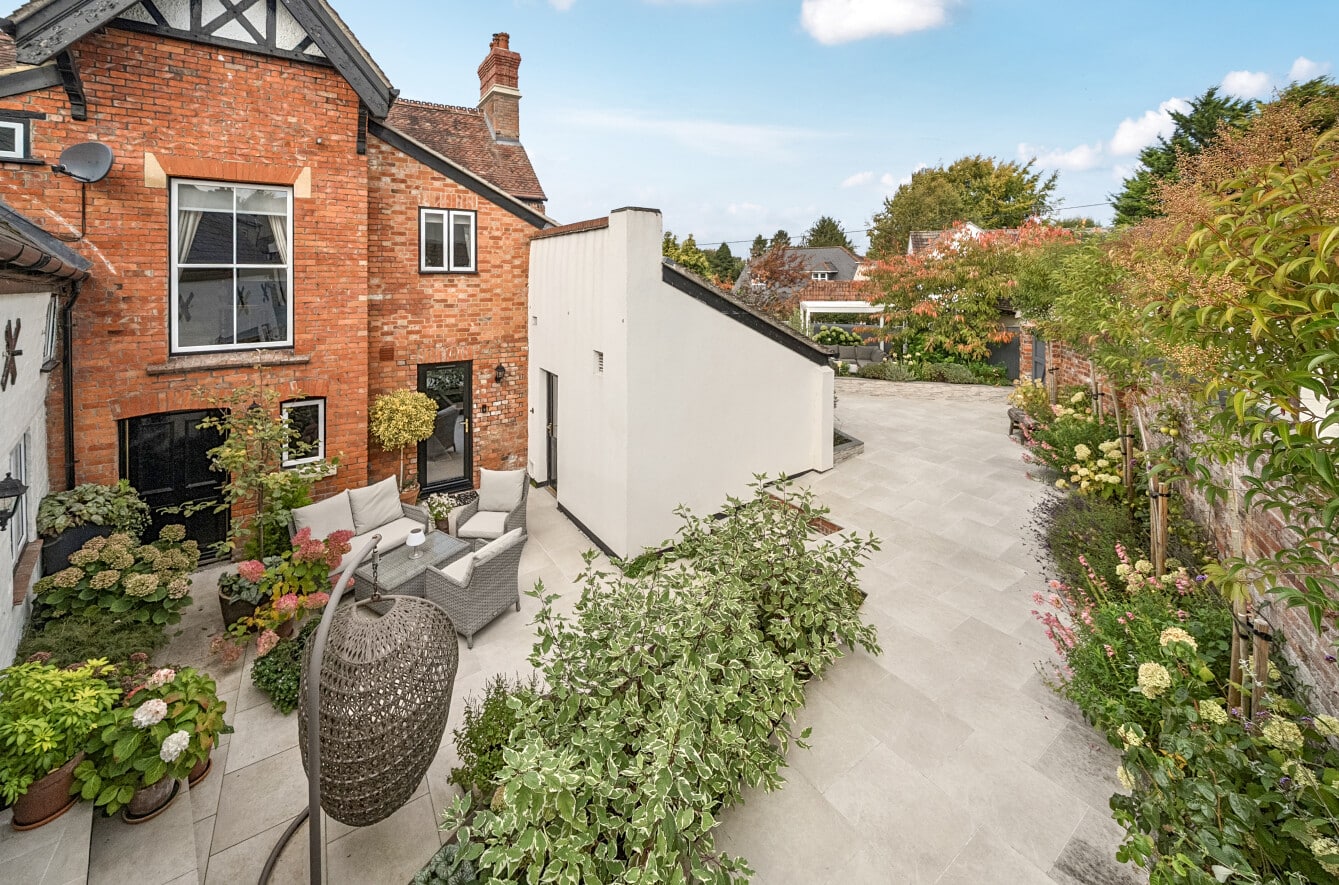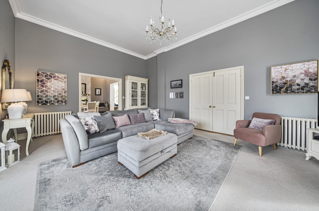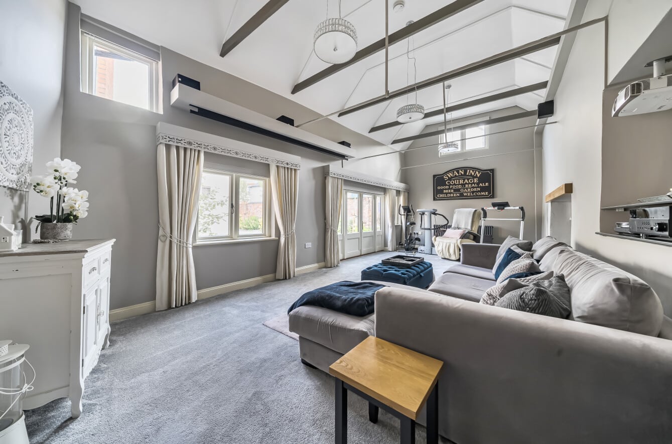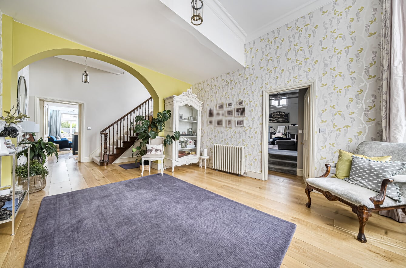 The home’s layout offers outstanding versatility, with the second reception room (currently arranged as a cinema and home gym) easily lending itself to a fifth bedroom or even an independent annex — benefitting from its own French door access directly onto the courtyard garden.
