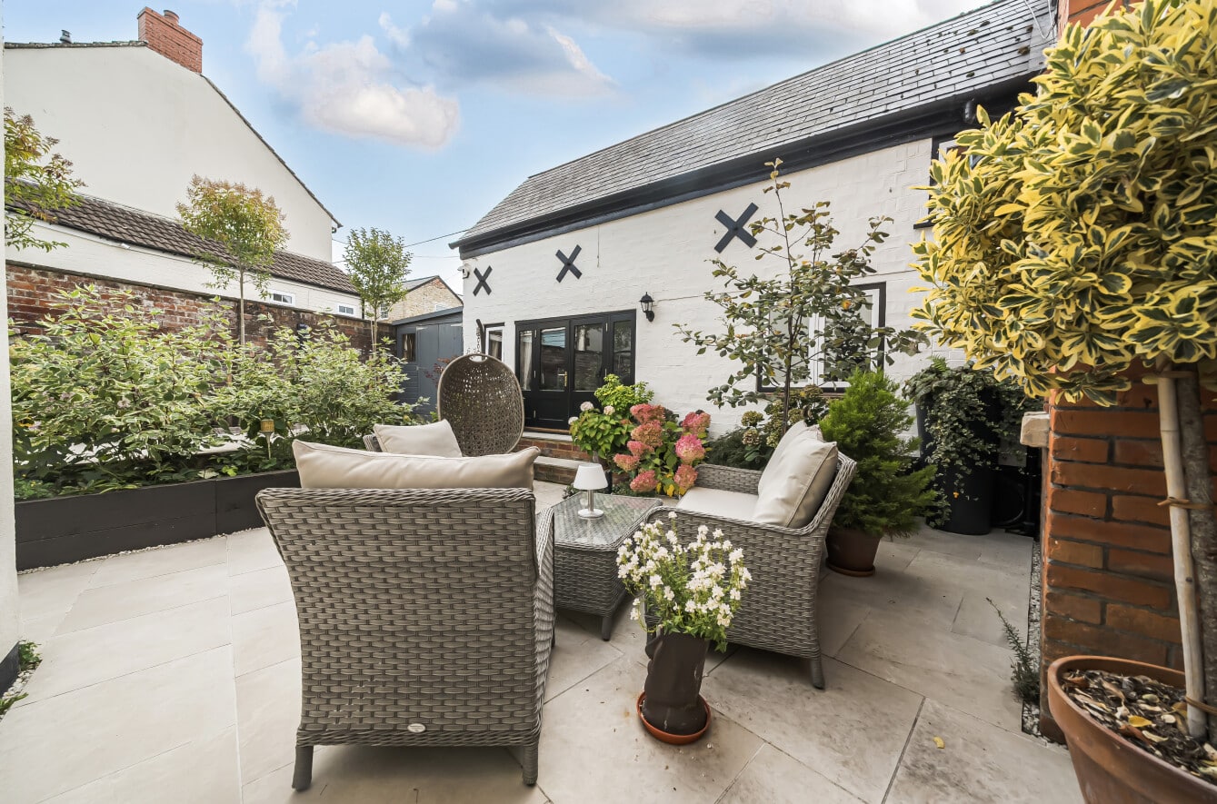 Outside, the landscaped gardens have been beautifully planned for alfresco entertaining, providing an inviting and private outdoor space ideal for family gatherings or summer evenings with friends. The property also benefits from a shared driveway, offering convenient off-road access.