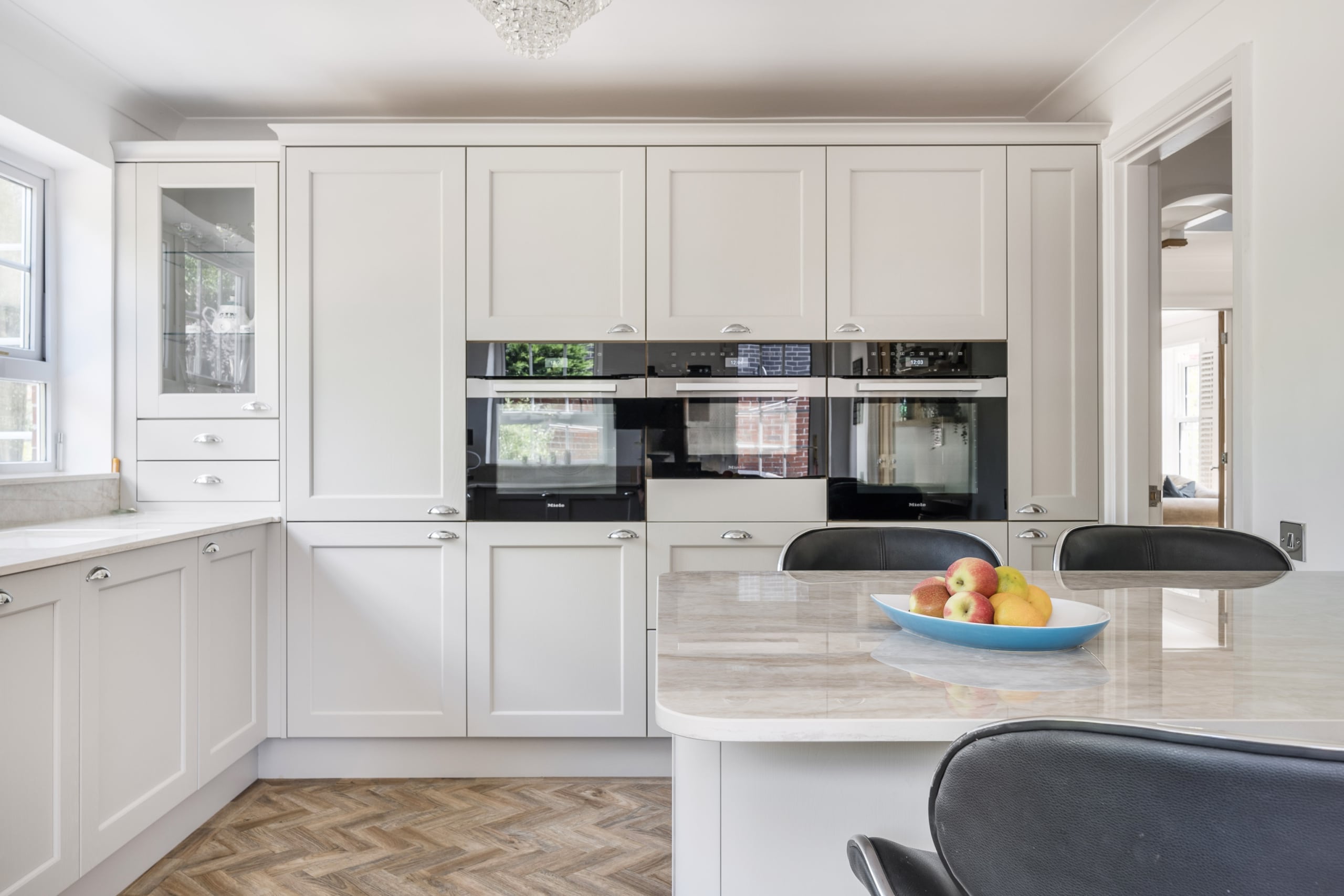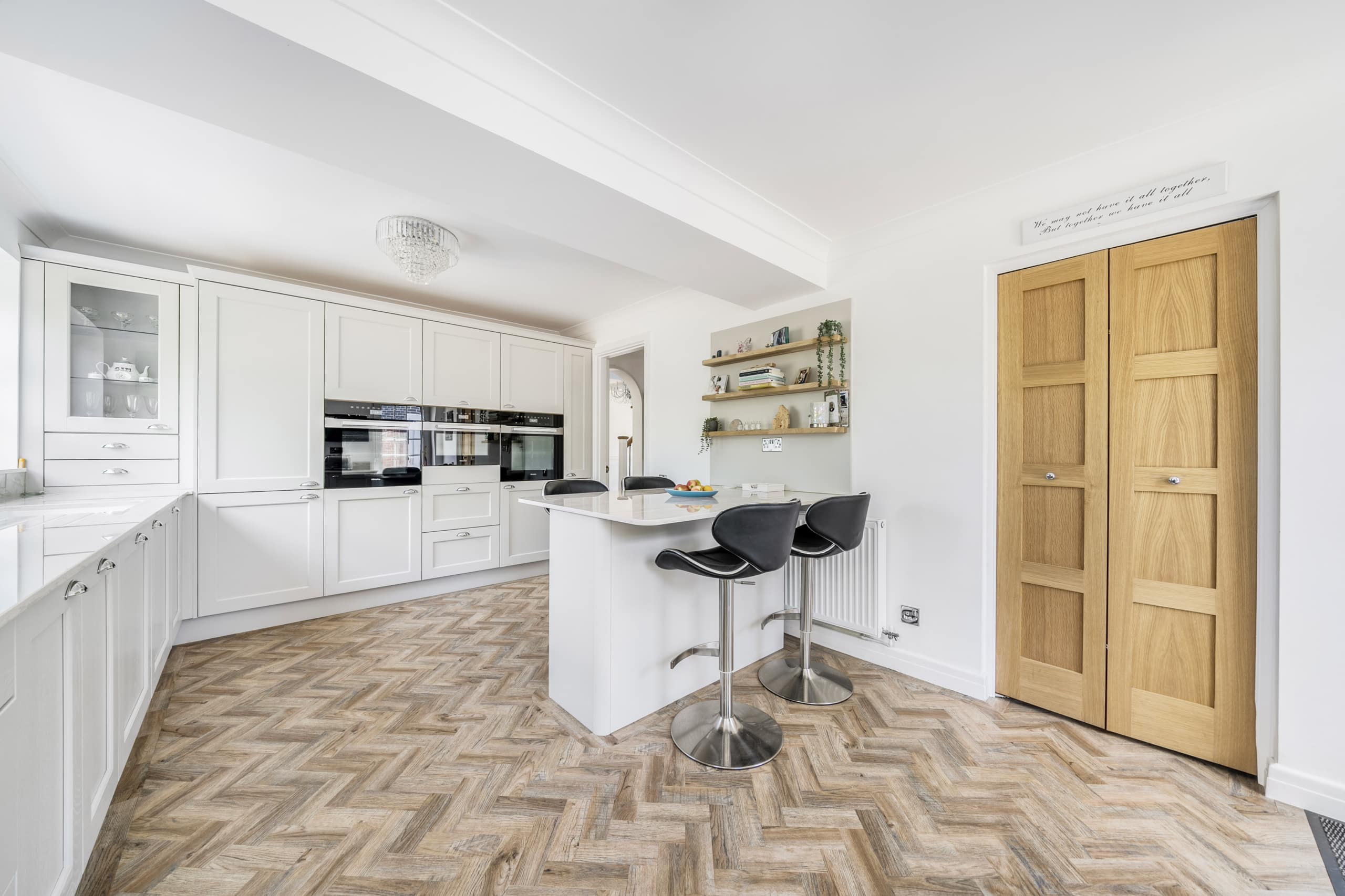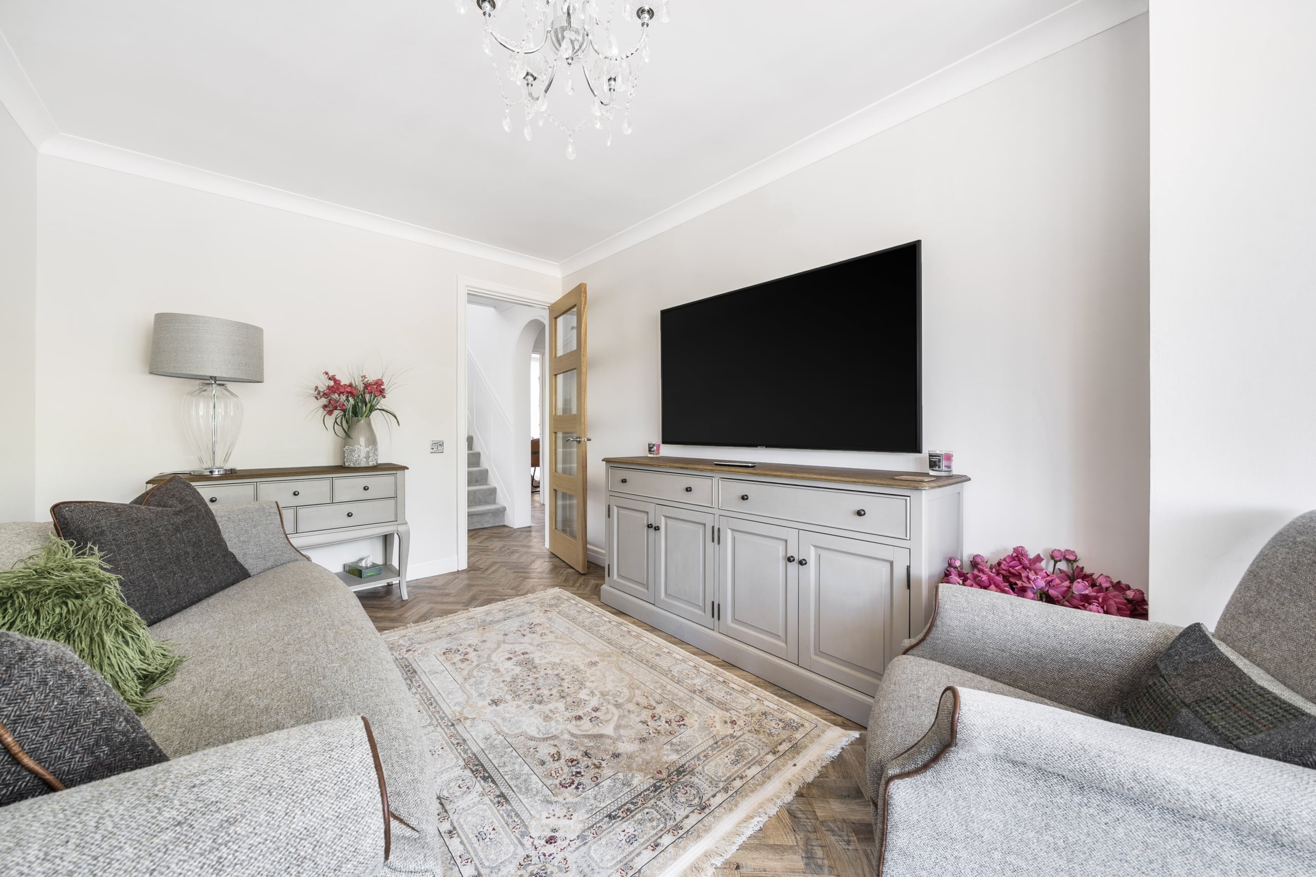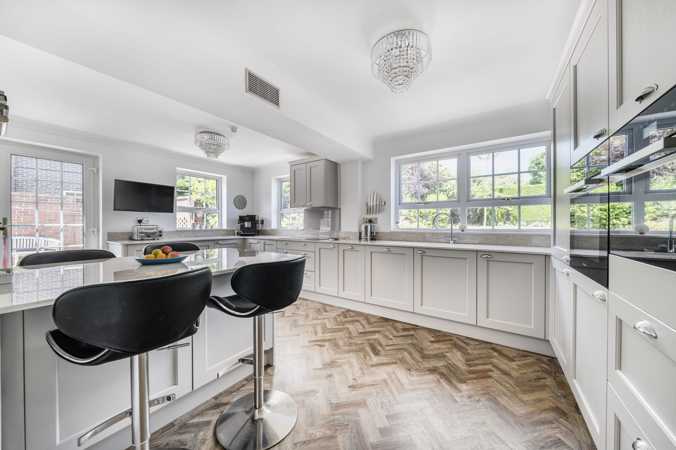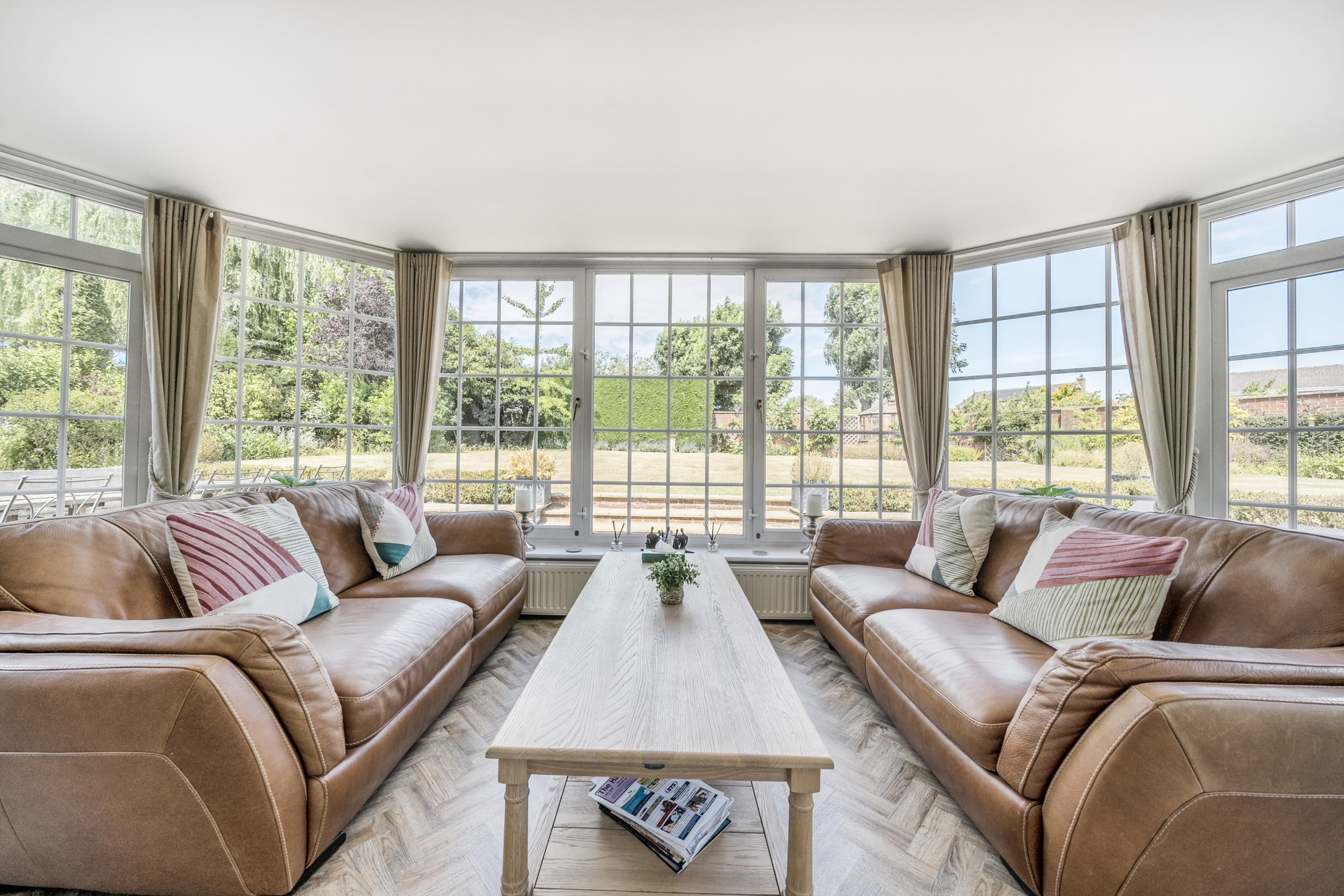 Upon entry you are greeted by a welcoming entrance hall with a stunning herringbone floor which runs throughout the downstairs space. The main reception room allows for plenty of natural light with its several windows, the fire place is a real focal point and a great feature for the colder months. The second reception room is of great size as it incorporates the previous conservatory space. The roof has been altered so the room can be used all year round with both heating and air conditioning. A seperate dining room is located a little further down, a fantastic space to host those Sunday dinners. The kitchen is a beautiful space featuring quartz worktops and Miele appliances which flow through to the utility room. The double garage can be accessed via the utility. A well-presented w/c completes the ground floor accommodation.